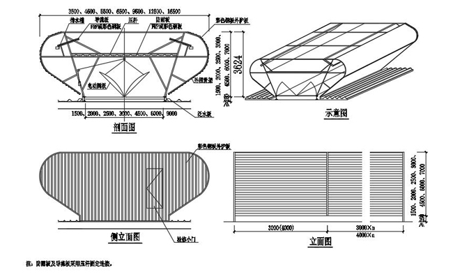 2. 主骨架和屋脊通風天窗基座采用焊接或者螺栓連接,與屋面形成一個整體,具有較好的結構安全性能。