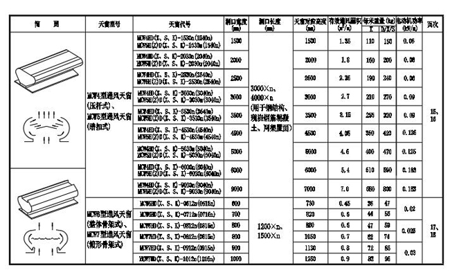1. MCW1、MCW2型通風天窗